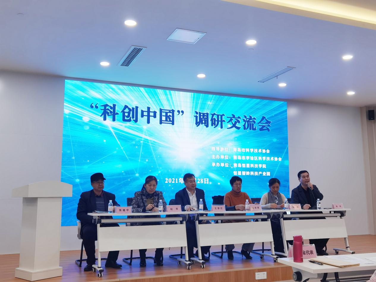 12月28日,在青岛恒星科技学院恒星智岭科技产业园路演大厅成功举办“科创中国”调研交流会。青岛市科协副主席王崇江,青岛市李沧区科协党组书记、主席王学青,青岛市科协咨询中心主任纪青,青岛市李沧区科协党组成员、二级调研员张建中,青岛市李沧区科协处长张玮,青岛恒星科技学院科技处处长刘卓等领导及各学院科研骨干代表、恒星智岭科技产业园企业家代表、创业学生代表参加了此次交流会。此次会议就发挥“科创中国”科协系统人才智力与组织网络优势及创新合作项目等内容与企业展开了调研座谈。会议由李沧区科协王学青书记主持。