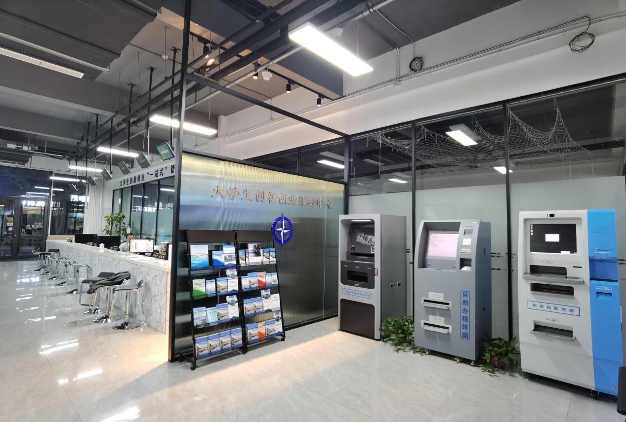 园区成立“大学生创新创业服务中心”,对接青岛市行政审批局,在本中心设立营业执照办理、发票、税务等自助办理终端,成为青岛市唯一有此便利条件的园区。