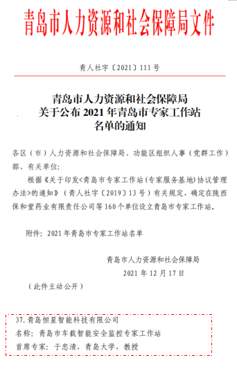 根据青人社字〔2021〕111号文件的通知,我校工学院联合青岛恒星智能科技有限公司共同申报的“青岛市车载智能安全监控专家工作站”,通过区级答辩推选以及市级答辩评审,成功获批青岛市专家工作站。2021年度我校又喜增一家市级科技平台。